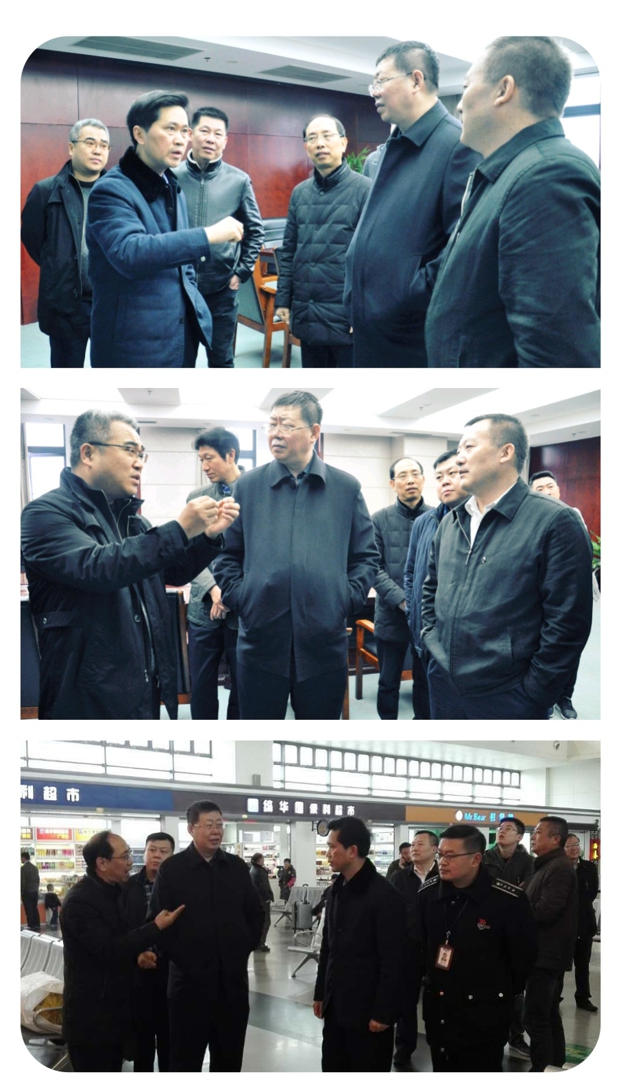 2月28日,春運(yùn)第28天,春雨紛飛,公安部春運(yùn)督導(dǎo)組一行在市交巡警支隊支隊長倪文連、市車管所所長景輝等領(lǐng)導(dǎo)陪同下檢查揚(yáng)州站春運(yùn)安全工作。