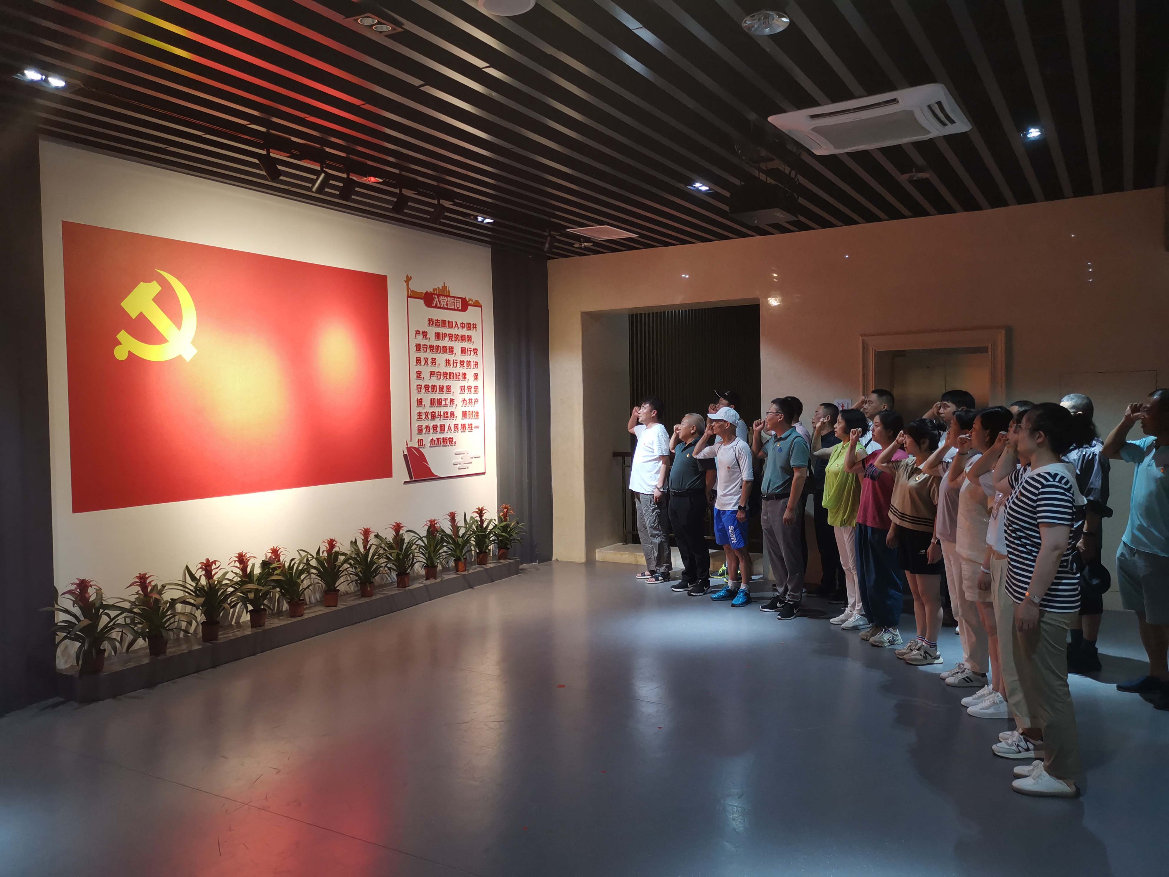在紀念館內的宣誓墻前,全體黨員向黨旗莊嚴宣誓,鏗鏘的誓言擲地有聲,以飽滿的激情和聲音發(fā)出了身為共產(chǎn)黨員的自豪感和使命感,激發(fā)著大家干事創(chuàng)業(yè)的澎湃熱情。